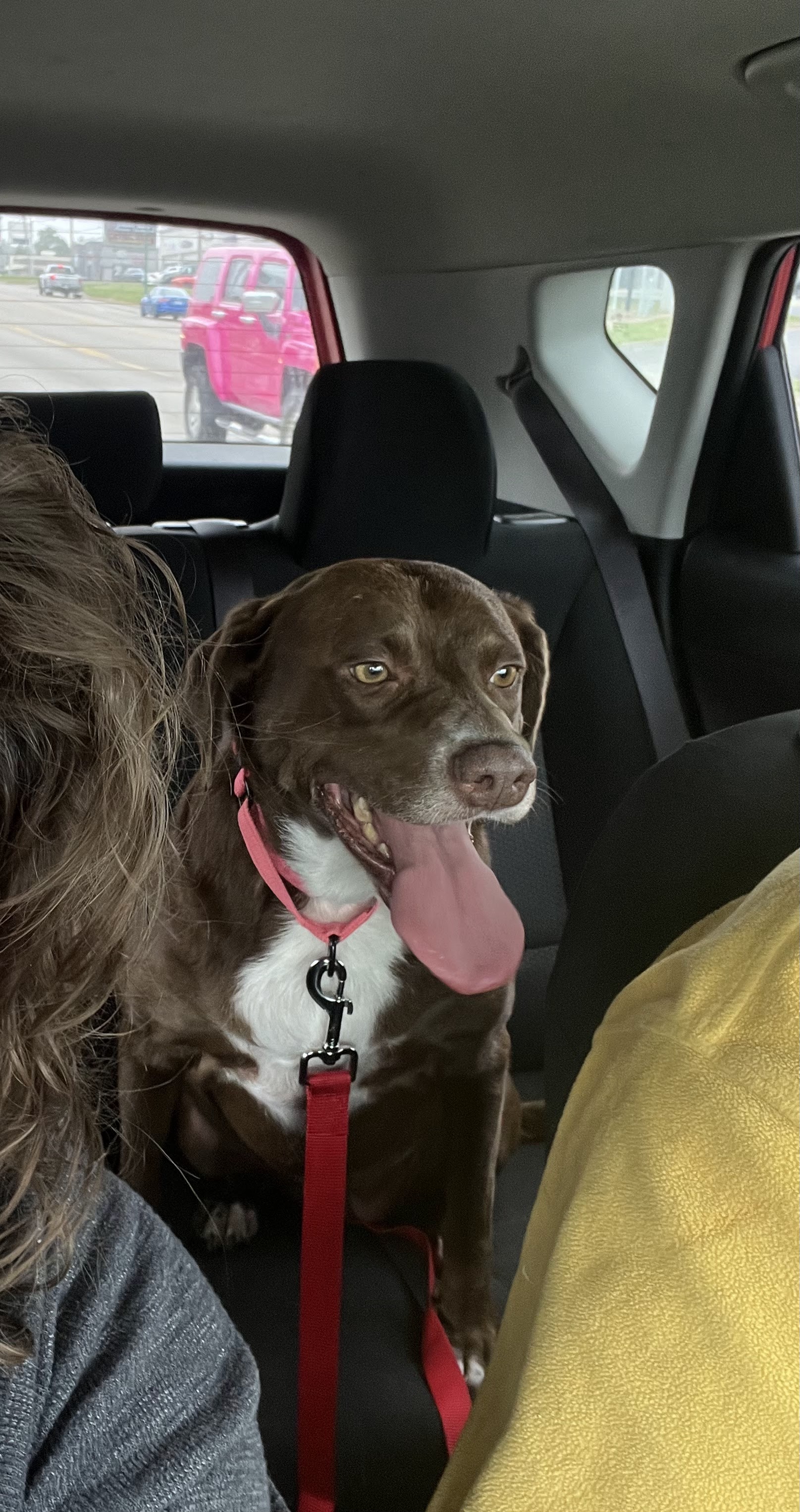 Photo of the week: Brownie! This photo was taken when we were bringing her home just after we adopted her. You can’t see it, but she was shaking. She had no idea where she was going or what was happening. Being nervous made sense.